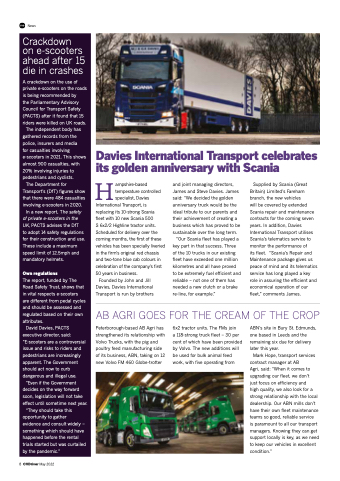 repair and maintenance contracts for the coming seven years In addition Davies International Transport utilises Scania’s telematics service to monitor the performance of its fleet “Scania’s Repair and Maintenance package gives us peace of mind and its telematics service has long played a a a key role in in assuring the efficient and economical operation of our fleet ”